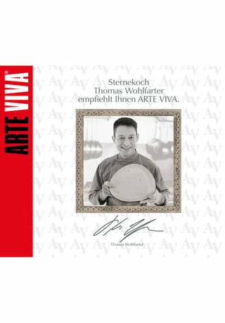 Sternekoch Thomas Wohlfarter empfiehlt Ihnen ARTE VIVA. Das Geschirr ist robust und wird durch seine Belastbarkeit im Alltag begeistern. Das Steinzeug ist mit viel Liebe zum Produkt für Sie gemacht. Es ist etwas Besonderes für meinen Genuss.