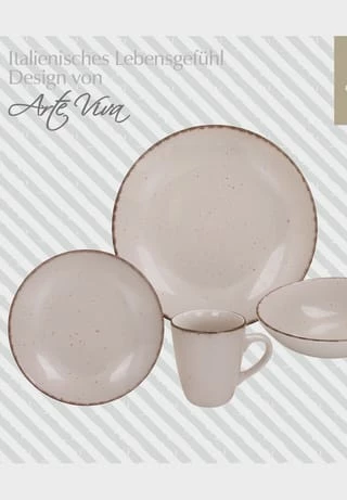 4 Kaffeebecher 400 ml, 4 Speiseteller, 26,5 cm, 4 Dessertteller, 20 cm, 4 Universalschüsseln