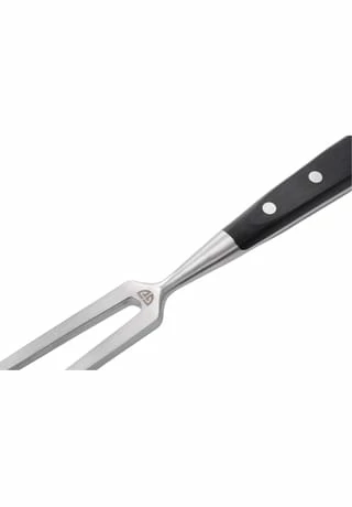 Bratengabel Profi aus Edelstahl zum zubereiten und servieren von Fleischstücken und Bratenscheiben. Lieferumfang 1 Fleischgabel PROFI Maße: Länge ca. 29,5 cm, Länge Zinken ca. 14 cm, Stärke der Zinken ca. 8,5 mm bis zur Spitze schmaler werdend bis auf ca. 4 mm, Gewicht ca. 184 g