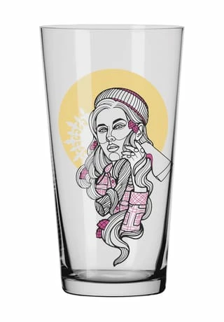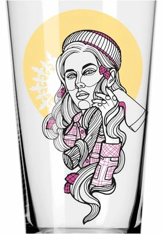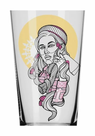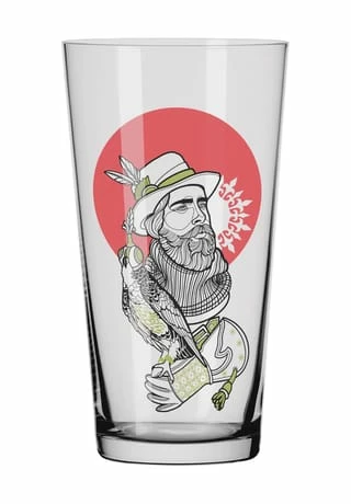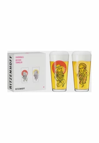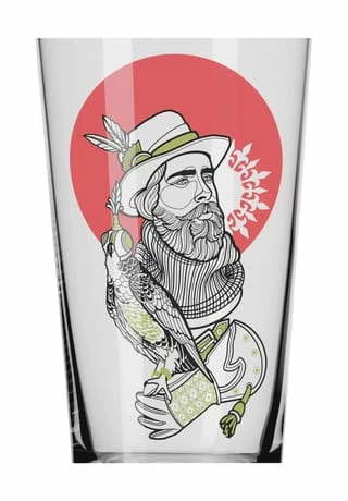 FARBKNALL BECHER-SET #2 VON VLADIMIR BOTT. Holzfällerin und Falkner. Gestochen scharf gibt das »Tattoo auf Glas« eine moderne Sichtweise auf traditionell männliche Berufe frei, die es mit den gebührenden Farb‐Kontrasten umzusetzen weiß.