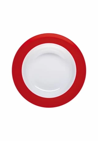 durch seine schlichte Form und Farbgebung lässt sich der zweifarbige, tiefe Porzellan-Teller hervorragend zu anderem Geschirr und zu jedem Deko-Element kombinieren