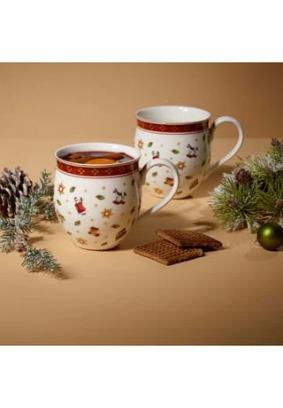 Mit der weihnachtlichen Kollektion Toy’s Delight von Villeroy & Boch bringen Sie besinnliche Festtagsstimmung in Ihr Zuhause. Die vielseitige Artikelauswahl lädt ein zum kreativen Kombinieren, Sammeln und Verschenken. Detailverliebte Motive und Muster in den weihnachtlichen Farben Rot, Grün und Weiß versprühen nostalgischen Charme und wecken Kindheitserinnerungen. Die Kollektion ist der perfekte Begleiter für die besinnliche Winterzeit. Der Name Villeroy & Boch steht bereits seit 1748 für edles Porzellan höchster Qualität. Kaffee, Tee oder Glühwein genießen Sie aus den beiden großen Bechern mit praktischem Henkel. Genießen Sie den Zauber der Weihnachtszeit mit Villeroy & Boch. Mikrowellensicher und am besten von Hand reinigen. Becher-Set für Tee, Kaffee, Kakao, Punsch oder Glühwein Gefertigt aus hochwertigem Premium Porcelain Passt zu Toy’s Delight Royal Classic und zu Toy’s Fantasy