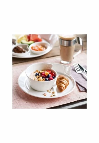 Das elegante Geschirr NewWave in reinem Weiß besticht durch außergewöhnliches Design mit kraftvoller Ausstrahlung. Klare Linien lassen viel Raum für persönliche Akzente auf dem gedeckten Tisch. Das als Trendgeschirr des Jahres ausgezeichnete Dekor ist ein echter Bestseller. Bereits seit 1748 steht Villeroy & Boch für exklusives Porzellan und geschmackvolle Einrichtungstrends. Der Frühstücksteller punktet durch Vielseitigkeit: Ob morgens zum Frühstück, nachmittags zum Servieren von leckeren Torten oder für abendliche Snacks, der Teller begleitet Sie den ganzen Tag. Verwöhnen Sie Ihre Lieben mit hochwertigem Geschirr von Villeroy & Boch. Natürlich geeignet für Spülmaschine und Mikrowelle. Teller mit Schwung zum gelungenen Frühstück Gefertigt aus hochwertigem Premium Porcelain Entdecken Sie außerdem NewWave Stone und NewWave Caffè
