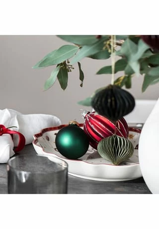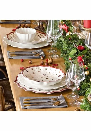 Mit der weihnachtlichen Kollektion Toy’s Delight von Villeroy & Boch bringen Sie besinnliche Festtagsstimmung in Ihr Zuhause. Die vielseitige Artikelauswahl lädt ein zum kreativen Kombinieren, Sammeln und Verschenken. Detailverliebte Motive und Muster in den weihnachtlichen Farben Rot, Grün und Weiß versprühen nostalgischen Charme und wecken Kindheitserinnerungen. Die Kollektion ist der perfekte Begleiter für die besinnliche Winterzeit. Der Name Villeroy & Boch steht bereits seit 1748 für edles Porzellan höchster Qualität. Diese dekorative Schale ist inspiriert von nostalgischen Papptellern und eignet sich zum Aufbewahren von Keksen, Obst oder Plätzchen oder zum Genießen einer heißen Suppe. Zaubern Sie festliche Gemütlichkeit in Ihr Zuhause mit Villeroy & Boch. Mikrowellensicher und am besten von Hand reinigen. Wird in weihnachtlicher Geschenkverpackung geliefert. Weihnachtliche Schale für Suppe, Süßes, Snacks Gefertigt aus hochwertigem Porzellan Passt zu Toy’s Delight Royal Classic und zu Toy’s Fantasy