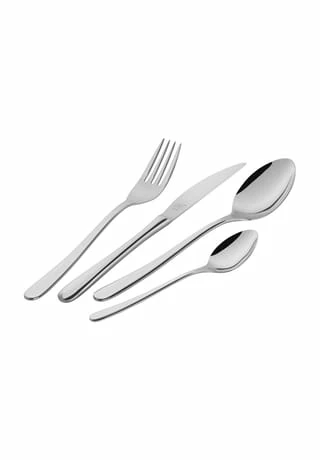 je 12x Menümesser, Menügabel, Menülöffel, Kaffeelöffel, Kuchengabel